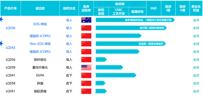 Ebpay官网生物的研发管线中,还包括治疗肺纤维化的LQ056和治疗囊性纤维化的LQ059,同样采用吸入给药。